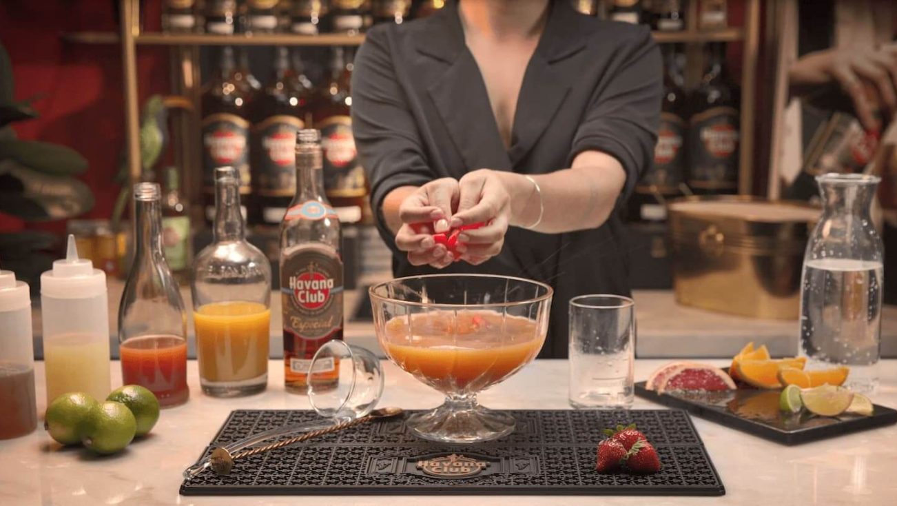 Μπορείτε πολύ εύκολα να φτιάξετε αυτήν τη συνταγή για φρουτώδες ποντς με χυμούς και το χρυσαφί ρούμι Havana Club Especial για τα πάρτι και τις παρέες σας! Δεν χρειάζεται καν να είστε πολύ ακριβείς – απλώς χρησιμοποιήστε ένα φλιτζάνι ή άλλο σκεύος για να μετρήσετε τις ποσότητες για τη συνταγή του κοκτέιλ σε «μέρη» και έπειτα αναμίξτε τα συστατικά σε ένα μεγάλο μπολ για να σερβίρετε τους φίλους σας.
