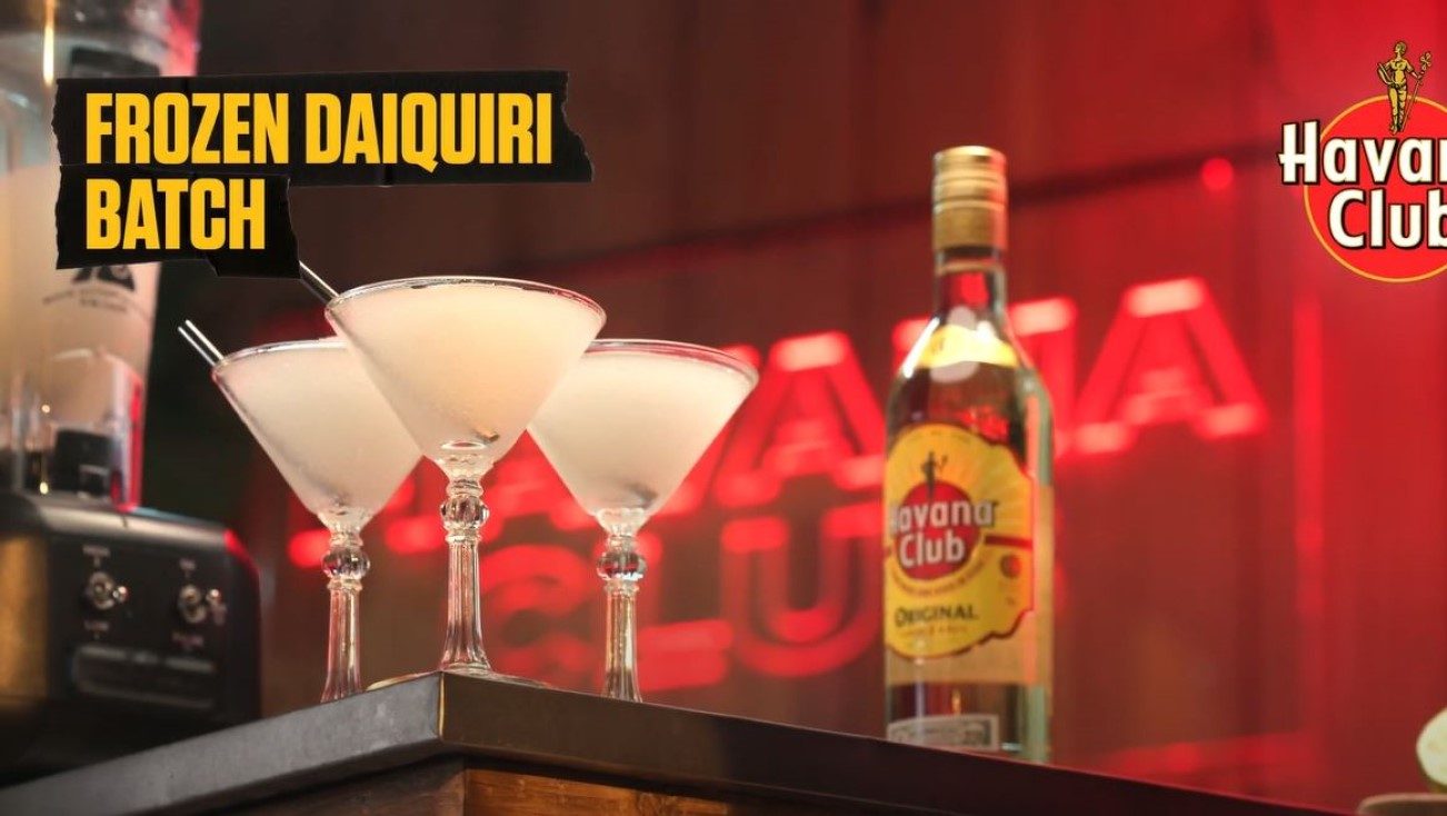 Nuestra receta de frozen daiquiri es la bebida perfecta para fiestas y permite crear grandes rondas para un número elevado de invitados. Todo lo que necesitas para empezar es una batidora ¡y no te cortes en echar plátanos o fresas frescos para darle un toque afrutado!